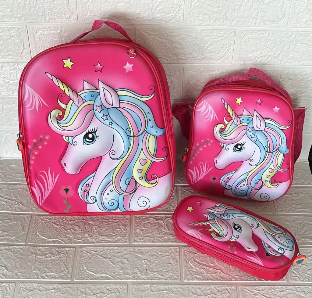 MALETIN 2 CIERRES + LONCHERA + CARTUCHERA UNICORNIO / MALETINES COD.3118