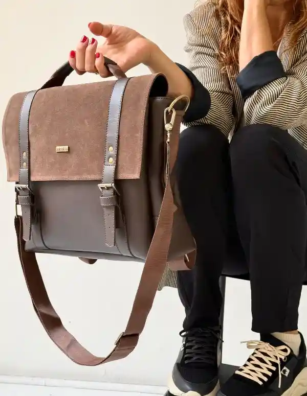 Maletín unisex ,diseñado para acompañarte con estilo en tu día a día. Su diseño estructurado y elegante combina dos texturas en tonos café, aportando un look sofisticado y versátil. Características: Elaborado en cuero vegano a base de pvc. Correa ajustable y removible para usar al hombro o cruzado. Asas superiores para llevarlo como maletín. Broches imantados con hebillas decorativas. Amplio compartimento principal y bolsillos internos. Ideal para portátil hasta 15 pulgadas, documentos y objetos personales. Dimensiones: 39cm x 32cm x 12cm.