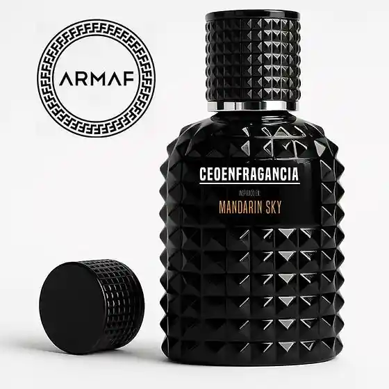 Mandarin Sky referencia masculina, es una fragancia fresca y energética con notas cítricas y aromáticas que aportan vitalidad y elegancia. Perfecta para el uso diario, deja una estela limpia, moderna y llena de frescura.