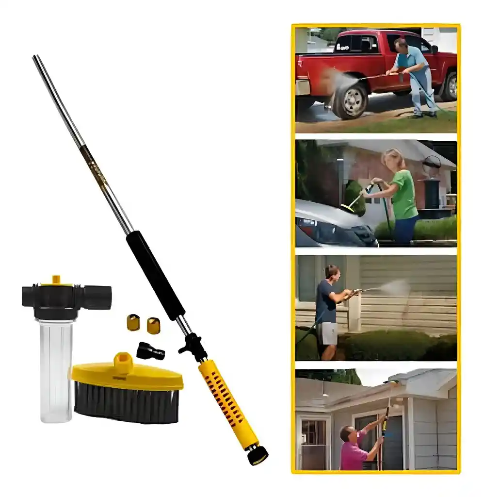 Pistola Hidrolavadora Herramienta Limpieza Autos Multiusos Hogar Ideal para hogares con techos altos o vehículos grandes, ya que permite alcanzar zonas complicadas sin escaleras, con potencia regulable y resultados de limpieza profesional. DESCRIPCION TPC La varilla de limpieza WaterZoom es un accesorio de alta presión diseñado para transformar una manguera común en una potente herramienta de limpieza. Ideal para jardines, cocheras, techos altos, camiones y superficies amplias, permite eliminar con facilidad suciedad incrustada, moho o restos difíciles. Gracias a su tecnología de compresión de agua y su boquilla ajustable, se adapta a diferentes superficies sin dañarlas, permitiendo elegir la presión según la necesidad del trabajo. Es una herramienta eficiente y versátil, perfecta para quienes buscan resultados profesionales desde casa. Su diseño ergonómico y ligero hace que cualquier persona pueda utilizarla sin esfuerzo, sin importar edad, género o estatura. El dispensador de jabón integrado y el cepillo acoplado permiten limpiar a profundidad sin necesidad de productos adicionales o herramientas complicadas. WaterZoom no solo ahorra tiempo y energía, sino que convierte la tarea de limpieza en algo rápido, práctico y hasta disfrutable. Con solo conectarla a tu manguera y girar el control de presión, estarás listo para dejar todo impecable. CARACTERISTICAS -Boquilla de presión ajustable -Dispensador de jabón integrado -Compatible con cualquier manguera -Fácil de usar y manejar -Limpieza profunda con mínimo esfuerzo -Ideal para techos, patios y vehículos -Elimina moho y suciedad adherida -Tecnología de compresión de agua -Cepillo incluido -Control manual de presión de salida QUE INCLUYE LA COMPRA x1 Kit Accesorios Limpieza Hidrolavadora