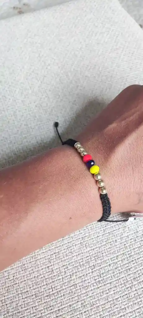 MANILLA NEGRA TEJIDA 6 BOLAS #6MM DE COLOMBIA EN MURANO, TEJIDA A MANO EN MICROMACRAME Los beneficios del oro laminado como joya son: su menor costo comparado con el oro sólido, su apariencia idéntica al oro macizo, su mayor durabilidad frente al oro chapado, y su resistencia a la humedad, lo que lo hace una alternativa asequible y elegante para quienes buscan estilo sin gastar una fortuna.