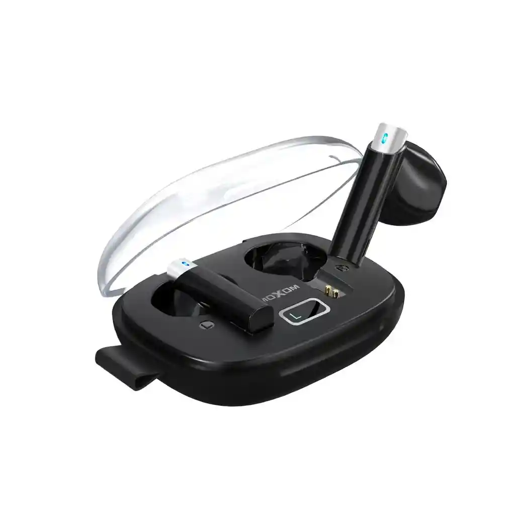 Los auriculares inalámbricos Moxom MX-TW42 son unos auriculares TWS (True Wireless Stereo) diseñados para uso deportivo, con características como Bluetooth 5.3, control táctil (Smart Touch), un diseño de lanyard (correa) para llevarlos seguros, y a menudo una pantalla digital en su estuche para mostrar el nivel de batería, ofreciendo graves profundos y un ajuste cómodo para actividades físicas.