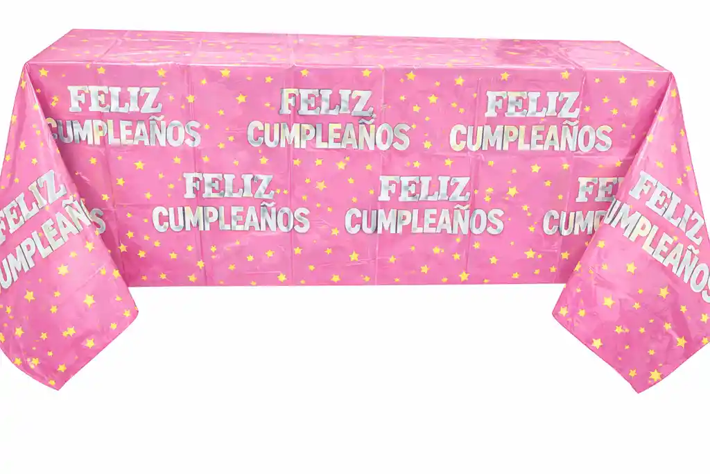 Mantel De Mesa Metalizado De Feliz Cumpleaños Para Fiestas - 137*183cm rosado