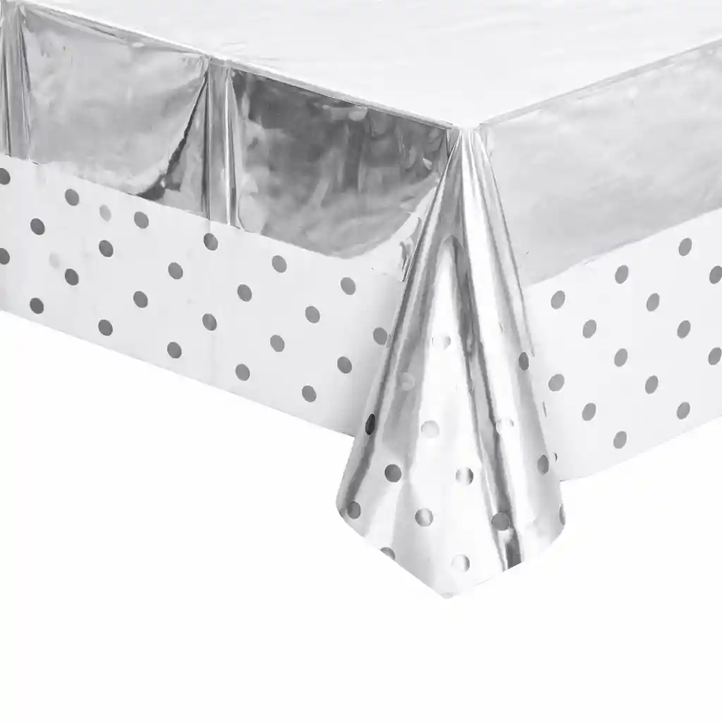 Mantel De Mesa Metalizado Para Fiestas - 137*183cm plateado con puntos