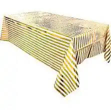 Mantel Fiesta Metalizado 183*137 a rayas Blanco Dorado