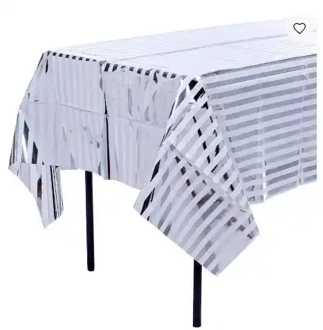 Mantel Fiesta Metalizado 183*137 a rayas Blanco plateado