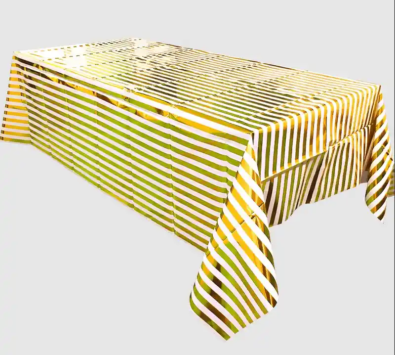 Mantel Metalizado De Plástico Rectangular Para Fiestas Con Diseño De Líneas SE ENVIA SEGUN DISPONIBILIDAD DE COLORES Y DISEÑOS Colores Disponibles : Fucsia , dorado con líneas blancas