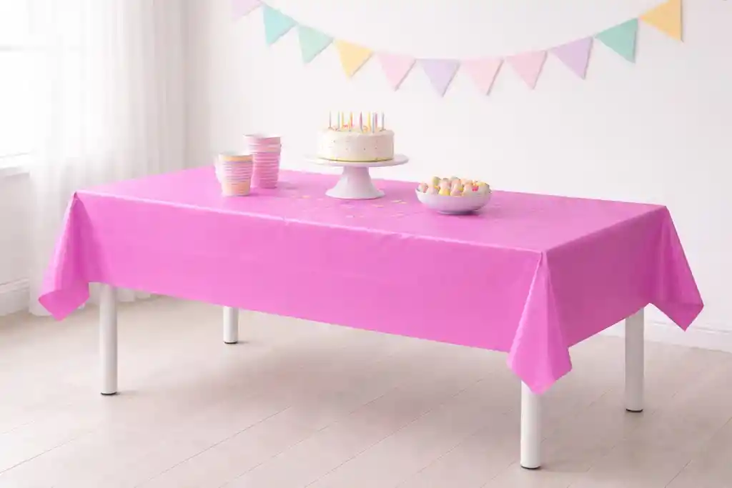 Dale un toque moderno y elegante a tus celebraciones con este mantel plástico color magenta, ideal para fiestas, cumpleaños, eventos y reuniones especiales. Su acabado liso y brillante aporta un look limpio y atractivo, perfecto para mesas rectangulares. Fabricado en plástico resistente, protege la mesa de derrames y facilita la limpieza. Es liviano, práctico y fácil de colocar, logrando que la mesa se vea bien estirada y ordenada en pocos minutos. Características: •Color: Magenta •Material: Plástico •Medidas: 1.37 m x 1.83 m (54 x 72 pulgadas) •Forma: Rectangular Uso: Fiestas, cumpleaños, eventos, reuniones Tener en Cuenta: •Incluye solo el mantel. Los demás elementos son solo ambientación.