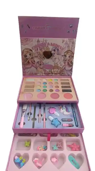 incluye una variedad de sombras, labiales, rubores y aplicadores