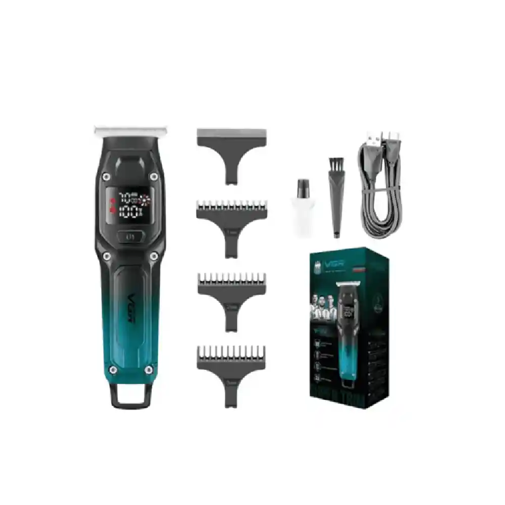 Maquina Patillera VGR V-964 Inalambrica Es una patillera (trimmer) profesional diseñada para acabados precisos, delineado de barba y cortes al ras, destacando por su motor con modo turbo de hasta 7000 RPM. Es una herramienta versátil que permite su uso tanto con cable como de forma inalámbrica, ideal para uso doméstico o en barberías. Caracteristicas: -Cuchillas: Acero inoxidable de alta precisión para un corte suave. -Batería: Litio de 600 mAh que ofrece hasta 100 minutos de uso continuo. -Carga: Tiempo de carga rápida de 1.5 horas mediante cable USB tipo C. -Pantalla LED: Indicador inteligente que muestra el porcentaje de batería, las RPM y el estado de rotación de la cuchilla. Garantía Por Defectos De Fabricación.