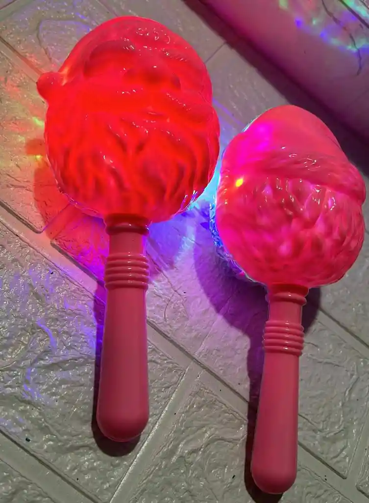 MARACAS DE NAVIDAD PAPA NOEL CON LUZ ROSADAS X2 UNIDADES COD.2695