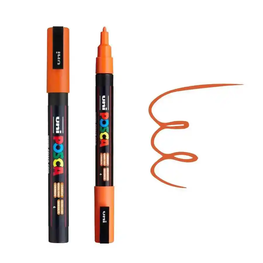 Marcador / Rotulador Posca Punta Redonda 1,3mm PC-3m Trazo fino Color Naranja Se pueden utilizar en diferentes superficies: Pizarras, maderas, paredes, papeles, vidrios...