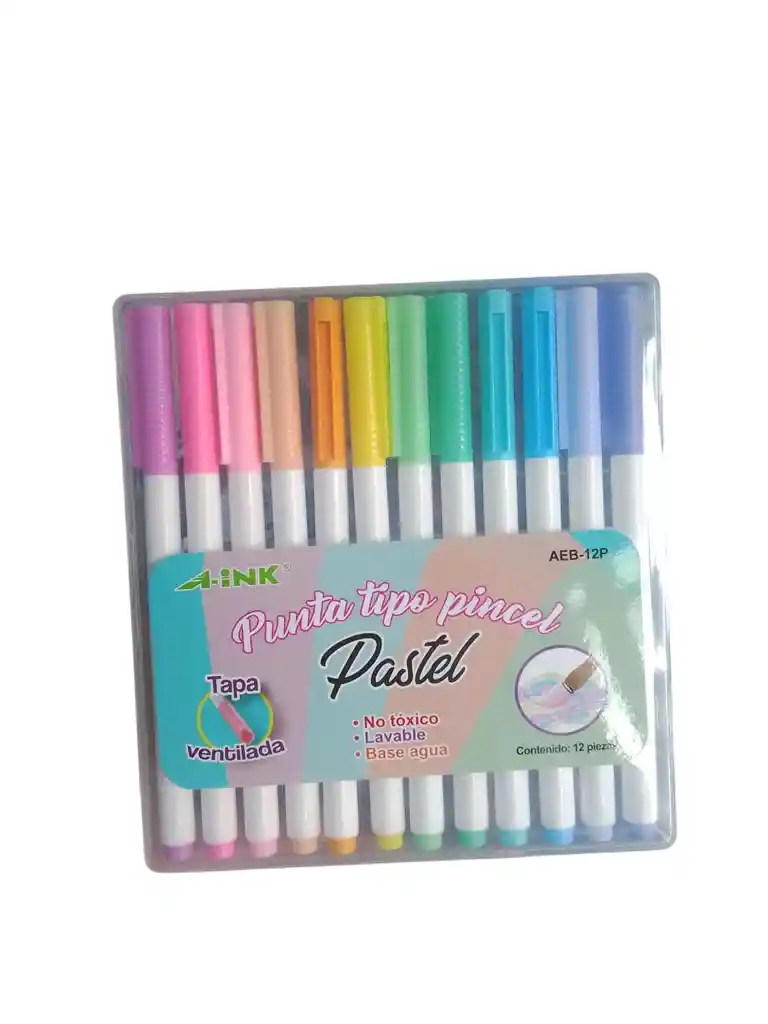 MARCADOR PUNTA PINCEL MAE A-INK X12 PASTEL, COLORES SUAVES Y VIBRANTES. IDEAL PARA LETTERING, DIBUJO Y DECORACIÓN. TRAZO FLEXIBLE Y DE ALTA CALIDAD.