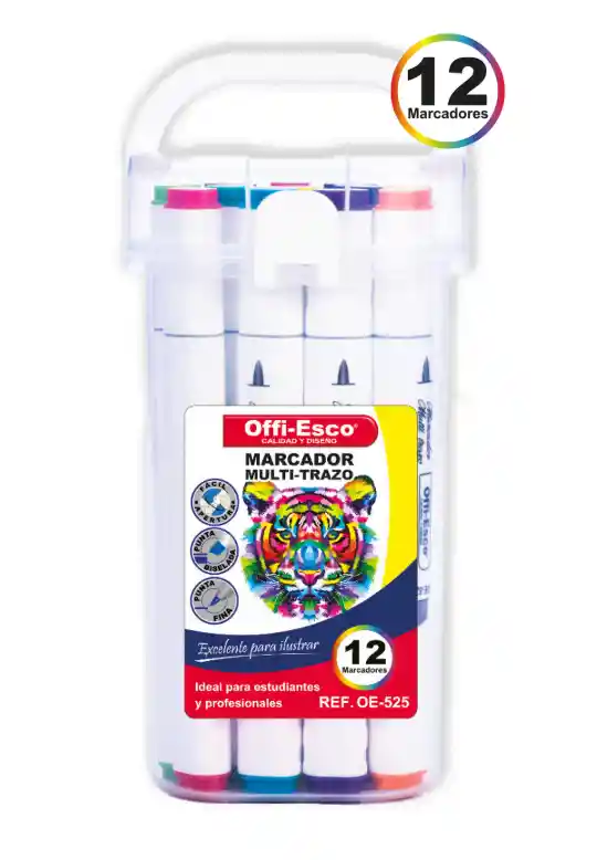 Marcador permanente multi-trazo x 12 Unds. Colores surtidos -Fácil apertura -Punta biselada y punta fina -Tinta permanente a base de alcohol -Excelente para ilustrar -Ideal para estudiantes y profesionales