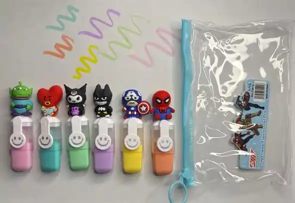 Marcadores Tipo Resaltadores Tonos Pastel Con Diseños De Superheroes Por 6 Unidades
