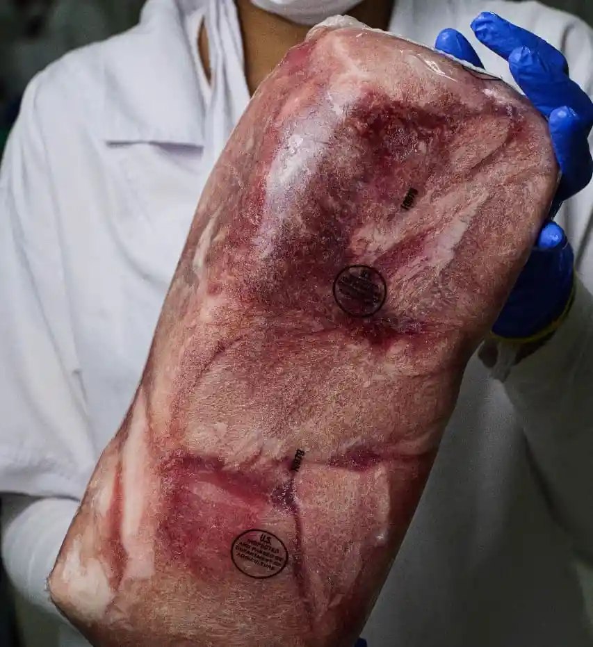 Masa de cerdo/Sirloin de cerdo, empacado en bolsa transparente, con un peso aproximado entre 990 y 1.020 g