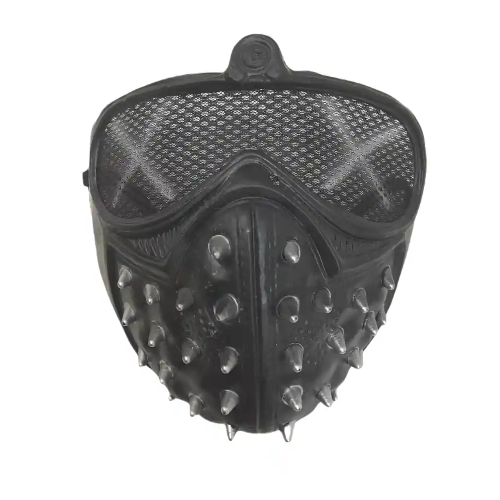 Máscara estilo Purga con taches metálicos, disponible en color dorado y negro. Diseño intimidante y rebelde, ideal para Halloween, fiestas temáticas y cosplay. Resistente, cómoda y de alto impacto visual.