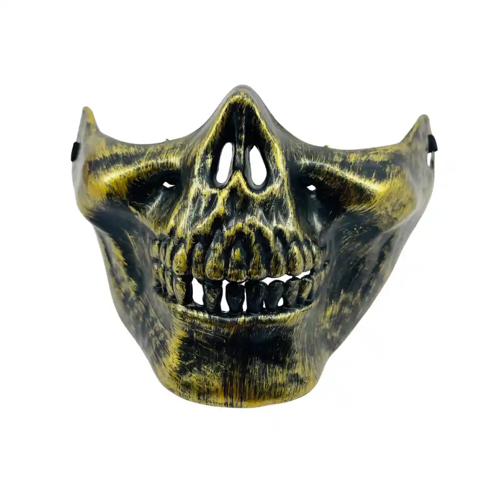 Máscara tipo quijada de calavera con acabado metálico, diseño agresivo y detallado. Ideal para Halloween, cosplay, eventos temáticos o estilo urbano. Ligera, cómoda y de gran impacto visual.Máscara tipo quijada de calavera con acabado metálico, diseño agresivo y detallado. Ideal para Halloween, cosplay, eventos temáticos o estilo urbano. Ligera, cómoda y de gran impacto visual.
