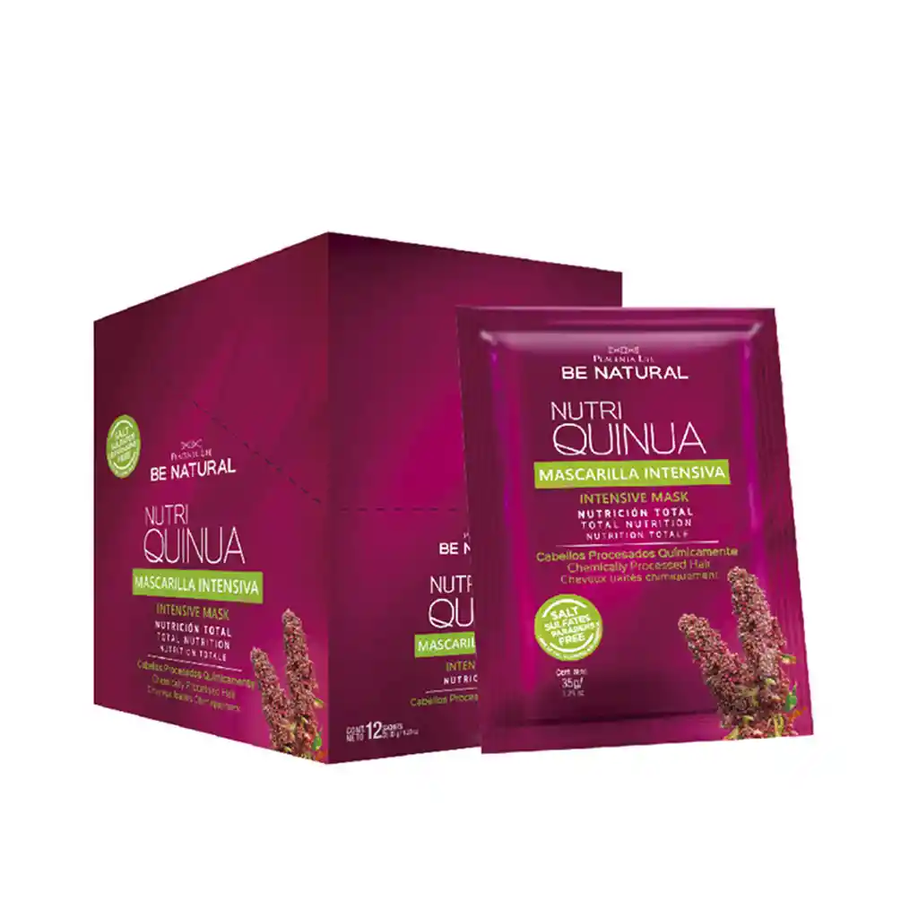 ¡Nutre, recupera y cuida el cabello tinturado! La Mascarilla Be Natural Nutri Quinua ayuda a nutrir y fortalecer el cabello tratado químicamente, también previene y evita la perdida de color del cabello tinturado retrasando el proceso de oxidación del tallo capilar. Además, este tratamiento para el cabello dañado cuenta con ingredientes naturales que ayudan a hidratar el pelo decolorado y maltratado, evitando el quiebre de la fibra capilar dejándolo suave, brillante y sedoso.