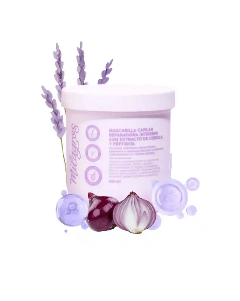 Recupera la suavidad, brillo y fuerza de tu cabello con la Mascarilla Reparación Intensiva con Extractos de Cebolla y Péptidos Milagros. Su fórmula repara daños por tintes, alisados o decoloraciones, sellando la fibra capilar y devolviendo la vitalidad desde la primera aplicación. ✨ ✨ Beneficios principales: Repara daños profundos causados por procesos químicos. Sella la fibra capilar y reduce el frizz. Devuelve el brillo, la suavidad y la elasticidad. Fortalece desde la raíz y mejora la resistencia del cabello. Resultados visibles desde el primer uso.