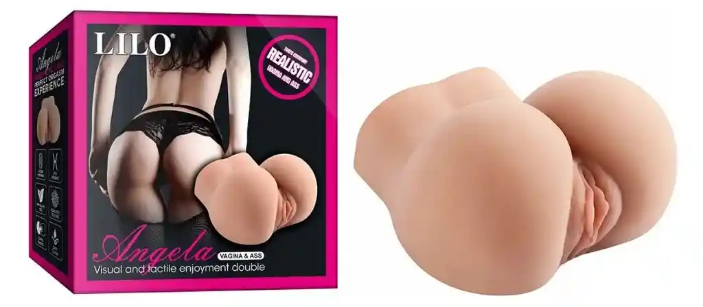 MASTURBADOR MASCULINO HIPERREALISTA ANGELA VAGINA Y COLA CON VIBRADOR DESCRIPCIÓN: Si lo tuyo es una experiencia ultra realista, entonces Angela de LILO, es el juguete ideal para ti. Con un material de CyberSkin, que imita la piel real, sus dos agujeros estrechos con textura interna y una cavidad para poner una bala vibradora. Características: - Color: Piel - Longitud total 16 x 16.5 cms - Longitud total insertable 13 cm - Funciones de modelo: Masturbador hiperrealista - Material: TPR - Certificación: CE - Aprueba de agua: Si - Incluye vibrador para aumentar el placer Recomendaciones de uso: - Lávalo antes y después de utilizarlo con agua tibia y jabón - Si es de uso personal con tu pareja, no necesitas preservativo para utilizarlo - Siempre guárdalo seco y en un lugar sin humedad - Se recomienda no sumergirlo por mucho tiempo en el agua para evitar problemas