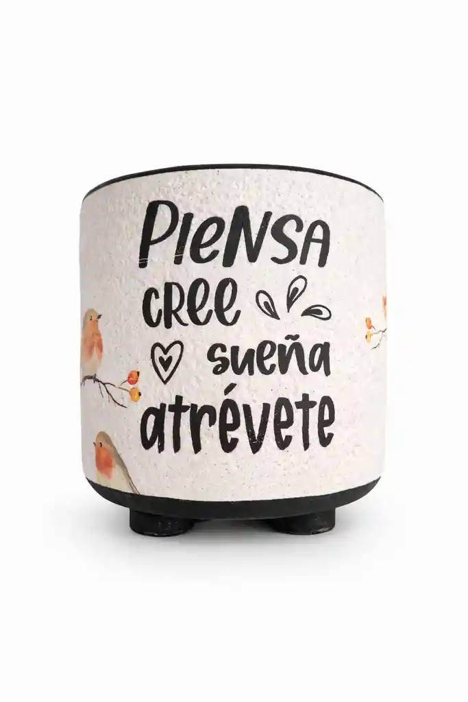Mate de plástico transformado con patas remachadas, decorado, esmaltado e impermeabilizado.
