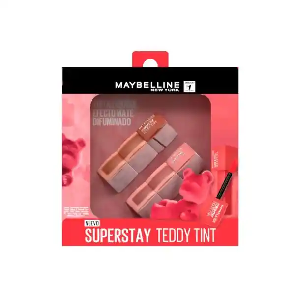 Contiene 2 Unidades. El Set Maybelline Super Stay Teddy Tint Incluye Dos Tintas Labiales en Tonos 20 Mascara Tear y 15 Skinny Dip Con Acabado Mate Difuminado y Duración de Hasta 12 Horas. Su Textura Ligera y Fórmula Innovadora se Deslizan Fácilmente Dejando un Color Intenso Que no se Transfiere ni se Desvanece.