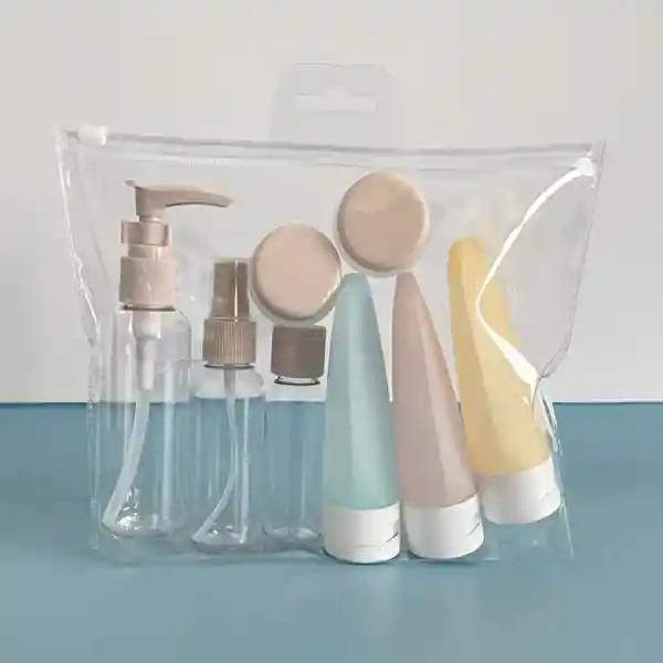 Kit de viaje completo con 11 piezas diseñadas para llevar tus productos favoritos en formato compacto. Incluye frascos, envases y herramientas esenciales para viajar ligera y organizada.