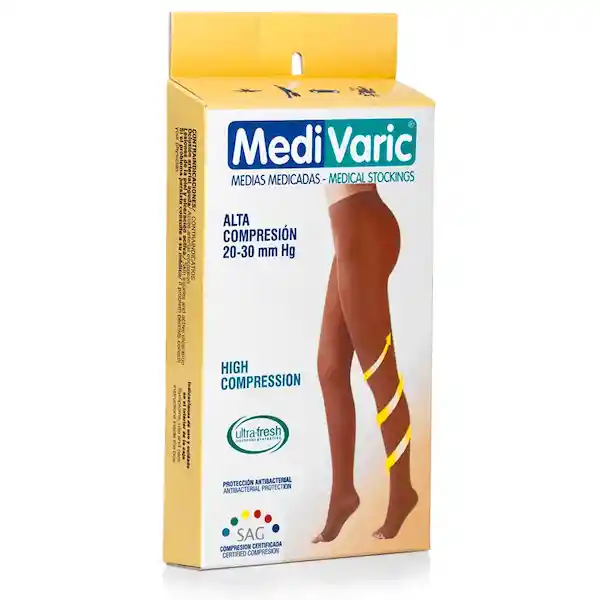 Estas medias de compresión graduada están en el nivel de mayor compresión de 20 a 30 mm hg, y vienen en la presentación de media a la cadera o pantimedia. Trae los dedos descubiertos o dedos libres, debido a que por su compresión alta requieren un calzador especial para ser colocadas y que debe retirarse a la mitad del proceso. Su diseño se mantiene gracias a fibras importadas que garantizan un perfecto ajuste en el cuerpo y complementan los beneficios del tratamiento con el especialista, puesto que estas medias deben usarse exclusivamente bajo fórmula médica. Los especialistas las recomiendan para dolores, inflamaciones y edemas producidos por las venas dilatadas o venas várices