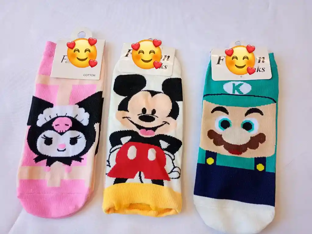 Medias Estampadas con personajes Kuromi, Mickey Mouse y Luigi *Contiene un par