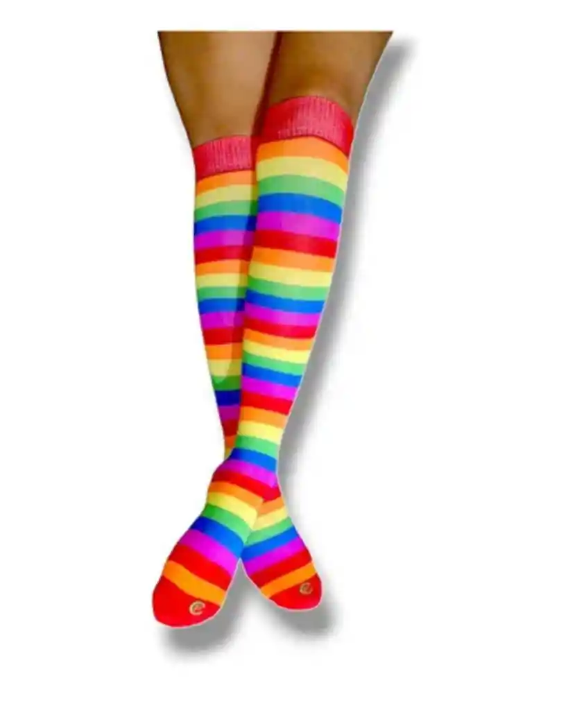 ¡Conviértete en el alma de la fiesta con estas divertidas medias de rayas coloridas! Perfectas para completar tu disfraz de payaso en Halloween o cualquier ocasión especial. Fabricadas con algodón y poliéster de alta calidad para garantizar comodidad y durabilidad. El diseño de rayas de colores arcoíris le dará un toque único y llamativo a tu outfit. Ideales para mujeres adultas que buscan destacar y expresar su personalidad. Lo puedes completar con tutu de colores para una experiencia genial!