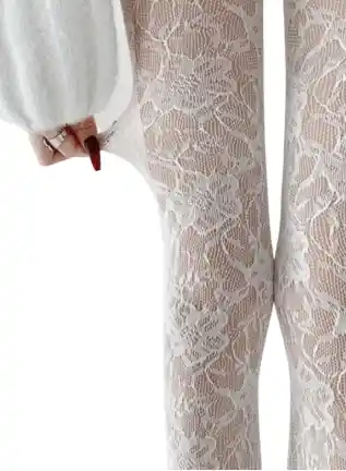 Medias tipo panty de encaje blanco ✔️Diseño floral y elástico Un toque delicado y femenino para elevar cualquier look con elegancia y textura. 🧦 Características del producto: ✔️Encaje blanco semi-transparente con motivos florales ✔️Material elástico y resistente, se adapta cómodamente a la pierna ✔️Ideal para combinar con vestidos, faldas o looks románticos ✔️Acabado suave al tacto y visualmente sofisticado Perfectas para ocasiones especiales, sesiones fotográficas o simplemente para sentirte única. ¡Detalles que marcan la diferencia!