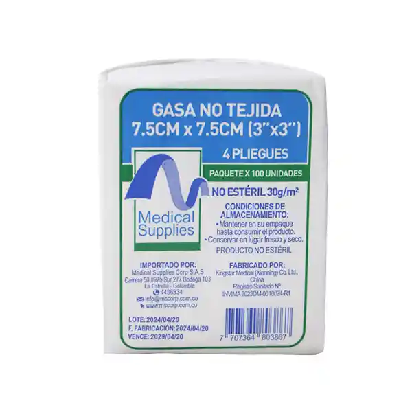 Producto No estéril, para limpieza y curación de heridas, absorción de fluidos y aplicación de medicamentos