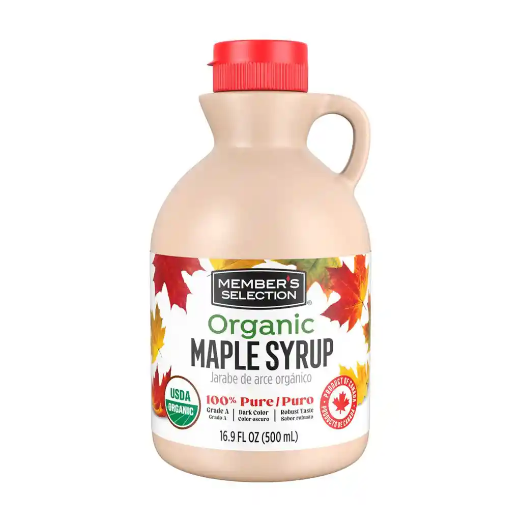 Perfecto para acompañar panqueques, waffles, avena o yogur, el Syrup Jarabe de Arce Orgánico Member's Selection también puede usarse como un toque especial en la preparación de postres, aderezos o incluso como ingrediente en recetas de cocina. Su sabor robusto y profundo añade una capa extra de dulzura a cualquier platillo, transformando lo común en una experiencia gourmet. Su presentación en envase conveniente asegura que siempre tengas suficiente para disfrutar de su versatilidad, ya sea en el desayuno, en la repostería o en bebidas.