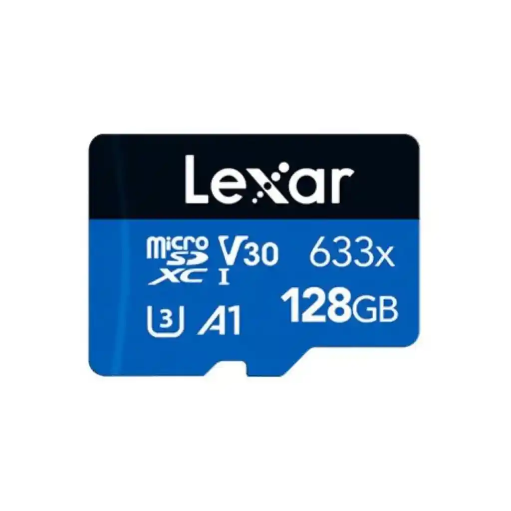 La Memoria MicroSD Lexar High-Performance 633x (Blue Series) de 128GB es la solución definitiva de grado profesional. Diseñada para smartphones, tabletas, cámaras de acción y drones, esta tarjeta te permite capturar, reproducir y transferir enormes cantidades de archivos multimedia a una velocidad de lectura ultrarrápida de hasta 100 MB/s. Esta tarjeta no conoce límites. Con certificaciones Clase 10, U3 y V30, te garantiza una velocidad de escritura continua (hasta 45 MB/s), ideal para grabar video en Full HD, 3D y 4K UHD sin saltos ni fotogramas perdidos. Además, gracias a su clasificación A1, optimiza instantáneamente el rendimiento de tu smartphone Android, logrando que tus aplicaciones y juegos carguen y se ejecuten con una fluidez espectacular. Marca Lexar Línea High-Performance 633x (Blue Series) Número de Parte (SKU) LSDMI128BB633A Capacidad 128 GB Formato MicroSDXC Clase de Velocidad Clase 10 Certificación de Video UHS-I / U3 / V30 (Optimizada para 4K UHD) Certificación de Apps A1 (Application Performance Class 1) Velocidad Máxima de Lectura Hasta 100 MB/s Velocidad Máxima de Escritura Hasta 45 MB/s Protección A prueba de agua, rayos X, golpes y temperatura Compatibilidad Drones, GoPro, Nintendo Switch, Smartphones, Cámaras IP