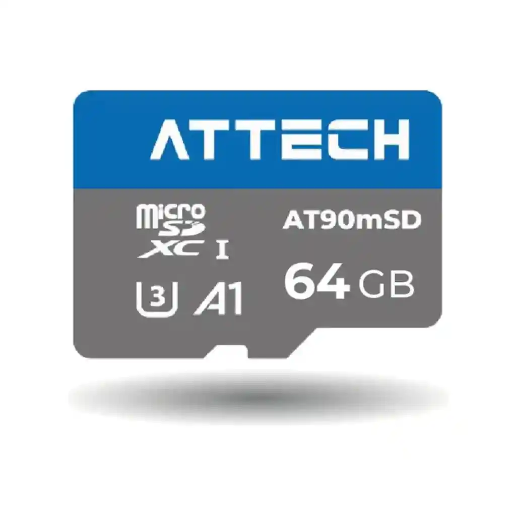 La Memoria MicroSD ATTECH de 64GB es la solución definitiva para quienes exigen alta velocidad y máxima capacidad sin pagar de más. Con 64 Gigabytes de almacenamiento real, tendrás espacio de sobra para miles de fotografías en alta resolución, horas de video en 4K y docenas de juegos pesados. Su certificación U3 (UHS-I) y su impresionante velocidad de escritura de 70 MB/s la convierten en el motor ideal para grabar video fluido en Drones, cámaras de acción (GoPro) o sistemas de seguridad avanzados. Además, gracias a la tecnología A1, esta memoria está optimizada para que las aplicaciones de tu smartphone o tablet Android se ejecuten a la velocidad del rayo directamente desde la tarjeta. Marca ATTECH Modelo / Número de Parte AT90mSDC10U3/64GB (AT90mSD) Capacidad 64 GB Formato MicroSDXC Clase de Velocidad Clase 10 Certificación de Video UHS-I / U3 (Optimizada para Full HD y 4K) Certificación de Apps A1 (Application Performance Class 1) Velocidad Máxima de Lectura Hasta 90 MB/s Velocidad Máxima de Escritura Hasta 70 MB/s Protección Extrema A prueba de agua, rayos X, golpes y temperatura Compatibilidad Smartphones, Drones, Nintendo Switch, GoPro, Cámaras IP, Tablets