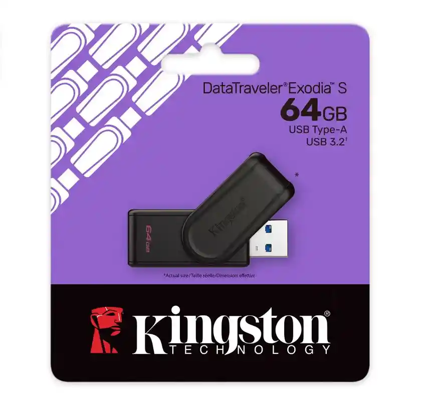 Memoria USB Kingston 64GB DataTraveler Exodia. Almacenamiento confiable para fotos, videos y documentos. Diseño portátil y resistente.