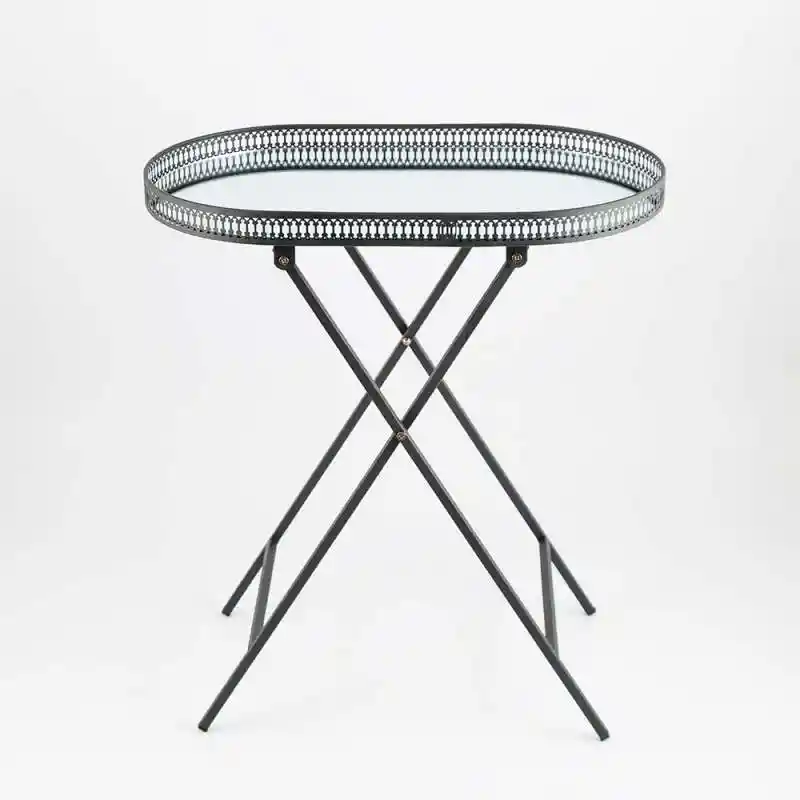 Mesa Auxiliar Expressions 50X56X30Cm Negro Vidrio Preciosa mesa compuesta por una bandeja ovalada con base de ...Ver más