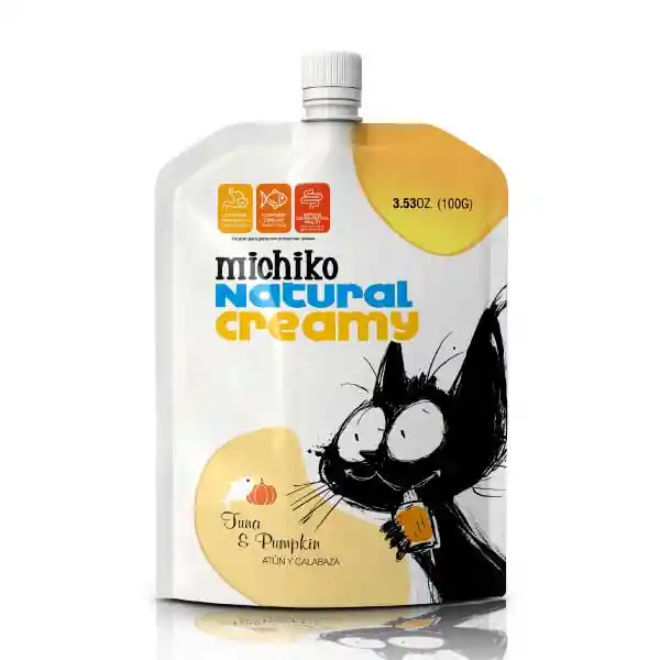 Mejora la salud digestiva de tu mascota con Michiko Natural Creamy Atún y Calabaza. La combinación del atún premium con la fibra natural de la calabaza ayuda a regular el tránsito intestinal. Es el snack perfecto para gatos que necesitan un extra de hidratación y cuidado gastrointestinal.