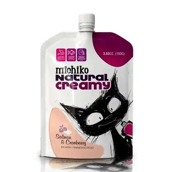 Protege las vías urinarias de tu gato con el delicioso Michiko Natural Creamy Salmón y Arándano Rojo. Este snack funcional utiliza las propiedades antioxidantes del arándano rojo para prevenir la adhesión de bacterias en el tracto urinario, mientras el salmón aporta proteínas de excelente calidad.
