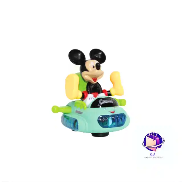 Muñeco de Mickey con su carro de juguete, con diseño colorido y divertido. Fabricado en material resistente y liviano, ideal para el entretenimiento de los niños y perfecto como regalo.