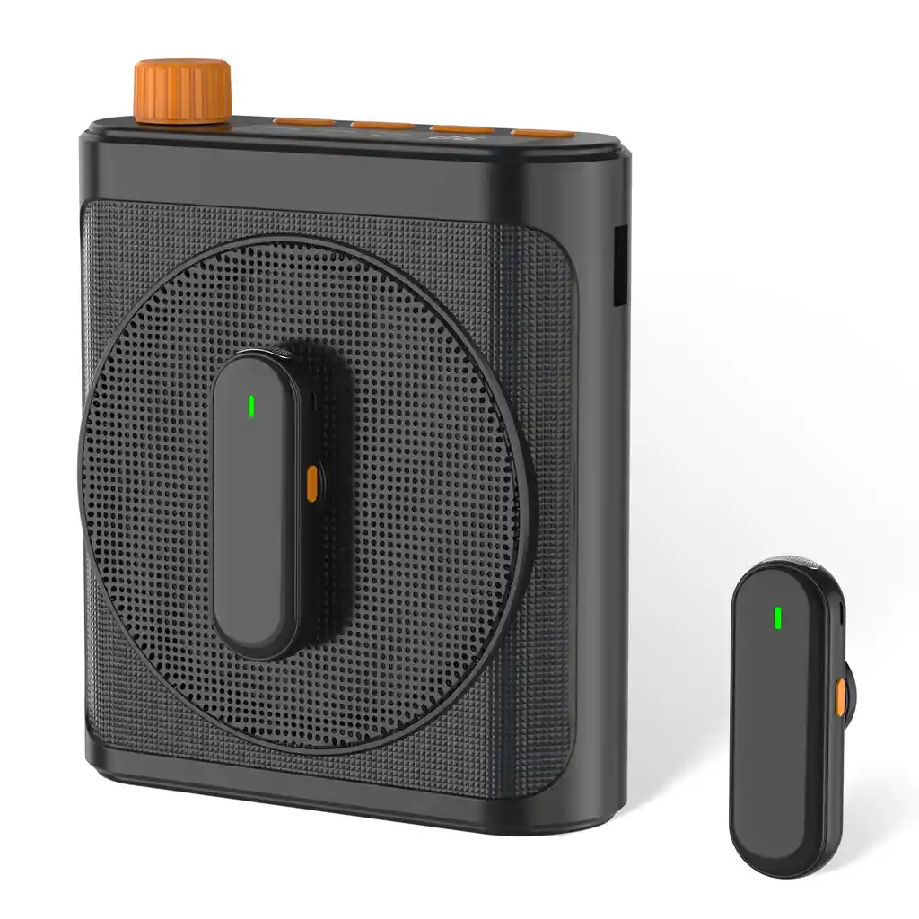 El Moxom AX82 es un altavoz amplificador de voz inalámbrico y magnético diseñado para hacerte escuchar con claridad en presentaciones, clases o guías turísticas, destacando por su micrófono de solapa magnético, sonido potente y batería duradera, con un diseño compacto y pantalla LCD para el nivel de batería. Características Principales: Inalámbrico y Magnético: Micrófono de solapa magnético para mayor libertad sin cables enredados. Sonido Claro: Potente y nítido, ideal para múltiples usos. Batería Duradera: Hasta 8 horas de uso con una carga. Diseño Compacto: Elegante y fácil de llevar. Pantalla LCD: Muestra el nivel de batería. Conectividad: Utiliza Bluetooth 5.2. Aplicaciones: Enseñanza, guías turísticas, presentaciones, etc..