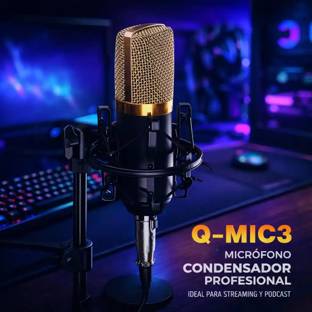 Ideal para grabación de voz, música, streaming, podcast y karaoke en casa. Diseñado para ofrecer excelente captación y claridad de sonido. ESPECIFICACIONES PRINCIPALES: • Tipo: Micrófono de condensador unidireccional • Patrón polar: Unidireccional (reduce ruido ambiental lateral) • Conectividad: Jack 3.5mm • Función: Grabación profesional y karaoke integrado • Captación: Amplificación de sonido para mayor sensibilidad • Incluye: Base soporte y sistema de montaje CARACTERÍSTICAS DESTACADAS: ✔️ Grabación profesional ✔️ Excelente reproducción de voz y música ✔️ Ideal para home studio ✔️ Perfecto para clases virtuales y creadores de contenido ✔️ Diseño moderno y profesional INCLUYE: • 1 Micrófono Andowl Q-MIC3 • Base soporte • Sistema de suspensión Recomendación: Compatible con dispositivos que tengan entrada 3.5mm. Puede requerir adaptador según el equipo.