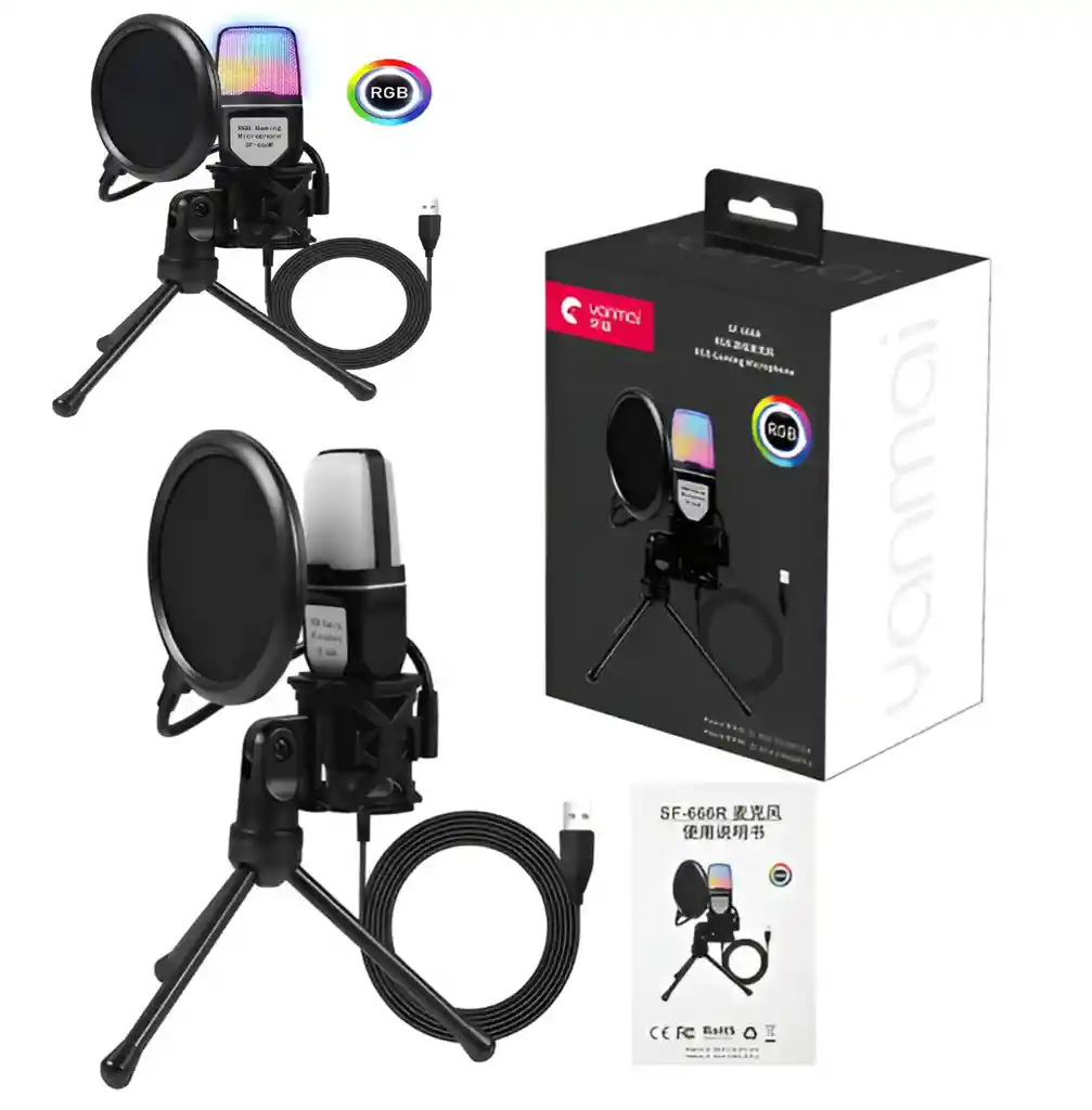 - Micrófono de condensador con patrón polar cardioide para captación precisa de sonido. - Frecuencia mínima de 50 Hz y máxima de 16 kHz para audio claro. - Sensibilidad de 30 dB para una comunicación nítida. - Cable con longitud de 1.35 m para mayor libertad de movimiento. - Incluye pantalla anti salpicaduras para reducir ruidos indeseados. - Conectores USB de entrada y salida para fácil conexión a computadoras.