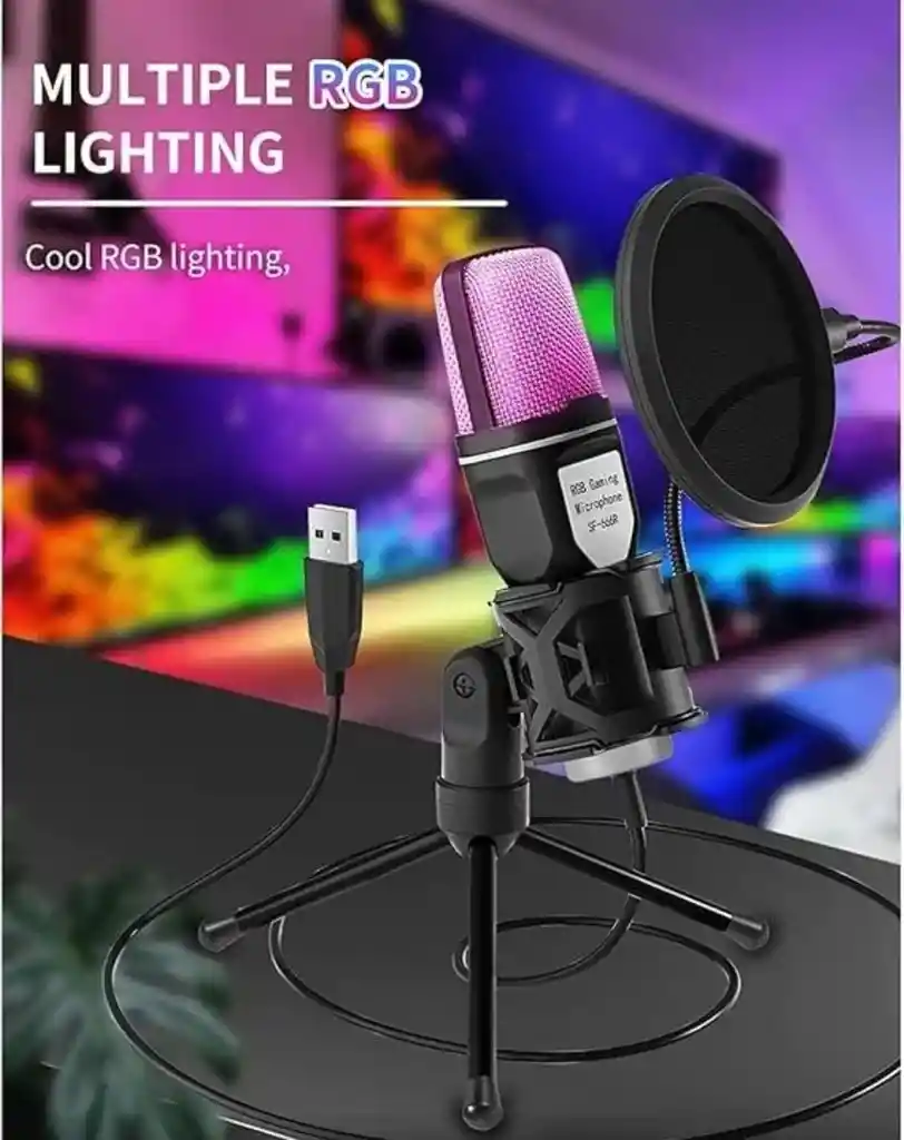 Micrófono condensador USB Yanmai SF-666R con iluminación RGB, ideal para streaming, gaming, clases virtuales, grabación de voz y conferencias. Diseñado con patrón cardioide que reduce el ruido ambiental y mejora la claridad de la voz, ofreciendo un sonido más profesional sin necesidad de interfaz externa. 🎙 Características principales: ✔️ Conexión USB Plug & Play ✔️ Iluminación LED RGB integrada ✔️ Patrón polar cardioide ✔️ Soporte trípode incluido ✔️ Ajuste 360° ✔️ Filtro anti interferencia ✔️ Ideal para PC y laptop Perfecto para: Streamers Gamers Creadores de contenido Clases virtuales Reuniones online Podcasts Color: Negro Producto nuevo