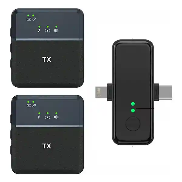 El Micrófono Inalámbrico Solapa Receptor Tipo C/Lightning SX31 es el micrófono solapa profesional perfecto para todas sus necesidades. Ahora, grabe y transmita con movilidad total sin perder calidad. Reciba la mejor calidad y facilidad de uso en un micrófono profesional para todos sus proyectos. 2 MICRÓFONOS DE SOLAPA PARA TRANSMISIÓN EN VIVO ÚTIL SIN OBSTÁCULOS BATERÍA DE LARGA DURACIÓN 2,4 GHZ WIFI INALÁMBRICO MICRÓFONO GRABACIÓN DE VÍDEO RECEPTOR CON INTERFAZ TIPO C Y LIGHTNING Especificaciones: Estos micrófonos de solapa admiten efecto de reverberación y retorno de la oreja en tiempo real, y es multifuncional. Este micrófono de solapa es plug and play y conexión automática, para que pueda usarlo fácil y cómodamente. Usando la reducción de ruido inteligente DSP y la recogida de sonido omnidireccional de 360 grados, este micrófono lavalier puede brindarle una experiencia de grabación HiFi y clara. Está fabricado con material ABS. La tecnología inalámbrica de 2,4 GHz admite una transmisión estable y antiinterferencia. La longitud de este producto es de 4,7 cm, el ancho es de 4,3 cm y la altura es de 1,1 cm. La batería de gran capacidad tiene una larga duración. Este micrófono de solapa es adecuado para portátiles, altavoces, amplificadores, teléfonos móviles, cámaras, tabletas, videocámaras, etc.