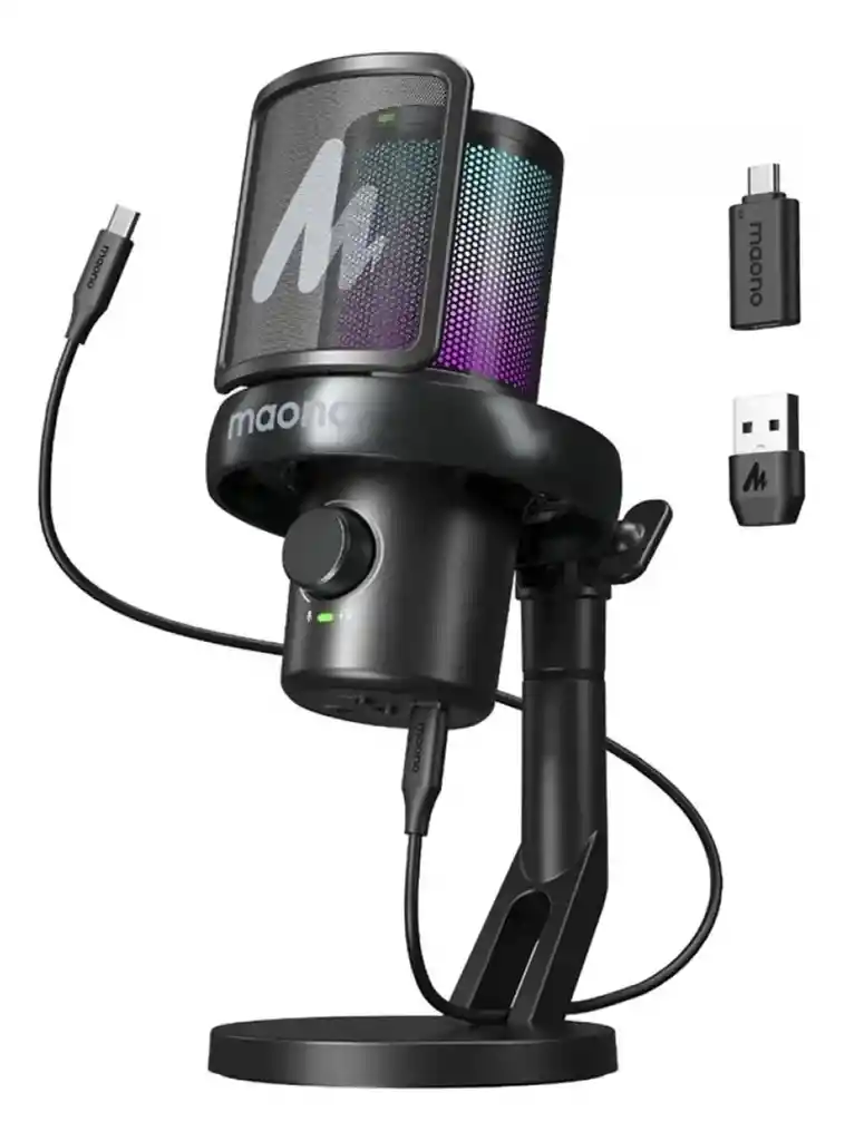 El micrófono inalámbrico condensador Maono DM40 Pro RGB es la elección perfecta para creadores de contenido, gamers y profesionales del audio. Con un diseño elegante en color negro, este micrófono ofrece un rendimiento excepcional gracias a su patrón polar omnidireccional, capturando sonido de manera clara y precisa en cualquier entorno. Compatible con múltiples sistemas operativos como Windows, PS4, PS5, iOS y Mac OS, el DM40 Pro RGB se adapta a tus necesidades, ya sea en una computadora, notebook o smartphone. Su conectividad inalámbrica y por cable te brinda la flexibilidad que necesitas para grabar o transmitir en cualquier lugar. La luz LED y la luz de encendido añaden un toque moderno y funcional, mientras que su sensibilidad de 73 dB garantiza una calidad de sonido superior. Incluye un soporte para facilitar su uso y optimizar tu experiencia de grabación. Con un peso de 800 g, este micrófono es ligero y fácil de transportar, ideal para quienes buscan calidad sin sacrificar la comodidad. Mejora tu producción de audio y lleva tus proyectos al siguiente nivel con el Maono DM40 Pro RGB. Garantía del vendedor: 3 meses