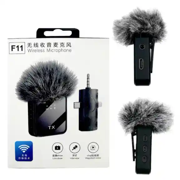 Micrófono Para Celular Inalámbrico De Solapa Tx F11 Color Negro