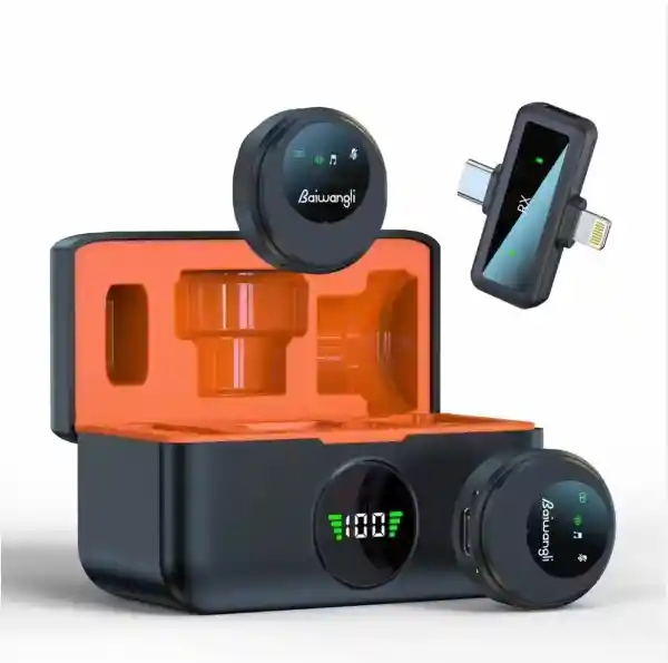 Micrófono Inalámbrico SX30 es un gadget super práctico. Te deja conectar uno a dos dispositivos, así puedes grabar o transmitir en dúo sin líos. Tiene cancelación de ruido ANC, así que los ruidos molestos quedan fuera, y solo escuchas lo que importa. Ideal para entrevistas, streaming o cualquier tipo de grabación. ¡Súper fácil de usar! Tipo de Micrófono: Condensador omnidireccional. Conectividad: Transmisión inalámbrica 2.4G estable. Compatibilidad: Equipado con puertos USB-C y adaptadores Lightning para compatibilidad con dispositivos Android e iOS. Funciones de Audio: Cancelación de ruido profesional con un solo botón y sonido de alta fidelidad. Estuche de Carga: Incluye un estuche de carga portátil con pantalla digital LED para mostrar el nivel de batería. Uso: Ideal para entrevistas, vlogging, YouTube, TikTok, conferencias y transmisiones en vivo. Especificaciones Técnicas Respuesta de Frecuencia: Generalmente entre 20 Hz y 20 kHz. Distancia de Transmisión: Alcance inalámbrico de hasta 15 a 40 metros en espacios abiertos, dependiendo del modelo específico. Duración de la Batería del Transmisor: Aproximadamente de 6 a 12 horas de uso continuo. Voltaje de Entrada: 5V. Relación Señal/Ruido: Típicamente alrededor de 64 dBm. Retraso de Transmisión: Aproximadamente 30 ms.