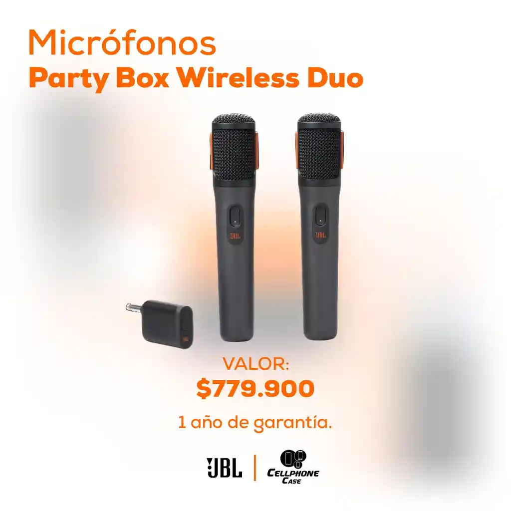 Haz que tus buenos momentos sean aún mejores con los micrófonos inalámbricos JBL PartyBox. Simplemente conéctalos a cualquier JBL PartyBox o utiliza el dongle para disfrutar de la libertad de una conexión inalámbrica y deja que tu voz se escuche. Conseguirás un sonido claro y fascinante tanto en espacios interiores como exteriores con estos micrófonos especialmente diseñados para reproducir un sonido increíble en cualquier altavoz PartyBox. El filtro pop de espuma incorporado minimiza los sonidos de voz externos mientras cantas un dúo con tu mejor amigo, y su sistema de montura a prueba de golpes evita ruidos indeseados cuando pasas el micrófono a otra persona. Hasta 20 horas de tiempo de reproducción y además, como incluso puedes usar el micrófono mientras se carga en el cargador integrado de PartyBox, la diversión continúa hasta que se termine la fiesta. Lleva el ritmo a tu casa con el micrófono inalámbrico JBL PartyBox.